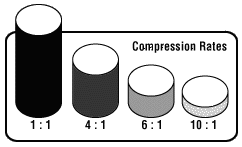 Strangely (notice the "P" for pictures) the compression levels for video are well over 20:1, and MPEG audio compression loses quality quickly at compression levels higher than a 6:1 compression ratio.